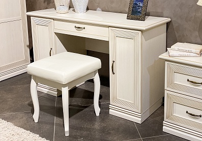 Чтобы не загромождать пространство спальни, некоторые решают приобрести столики туалетные без зеркала. Вариант осуществляется без весомых потерь, если в комнате имеется шкаф, оснащенный ростовым зеркалом. Решение смотрится оригинально и удобнее в плане свободного места на поверхности стола. Также к данному варианту обращаются, если зеркало уже имеется и расставаться с ним не хочется.