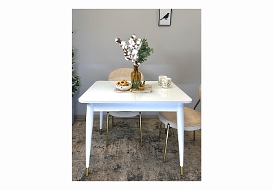 Стол обеденный Мане К1100 опоры белый(зол) / столешница белый глянец ЛДСП Стекло