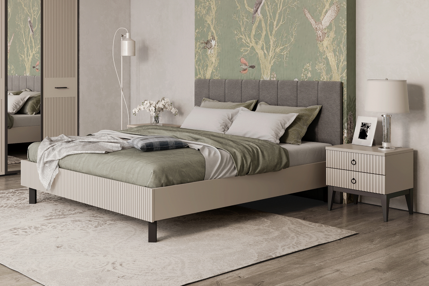 – описание: стиль современный, контемпорари, размер спального места 160 х 200 см, цвет кашемир серый, назначение для спальни.