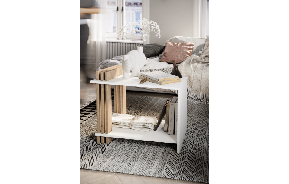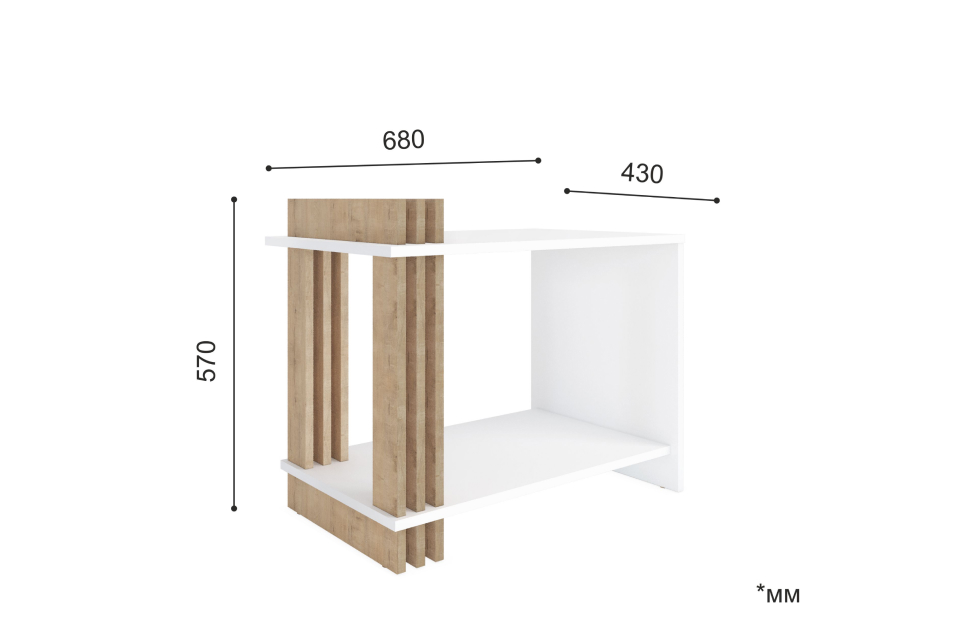 – описание: стиль минимализм, скандинавский, современный, назначение для дома, цвет белый, дуб бунрати, размер 57x68x43 см.