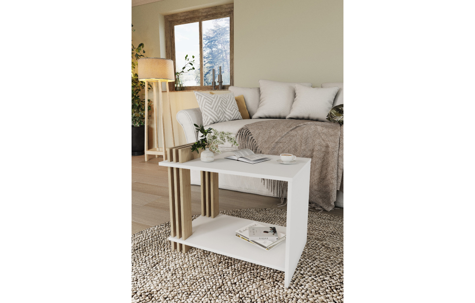 Цена на Стол журнальный Троя /Белый, Дуб Кендал от производителя , приобретите в кредит!