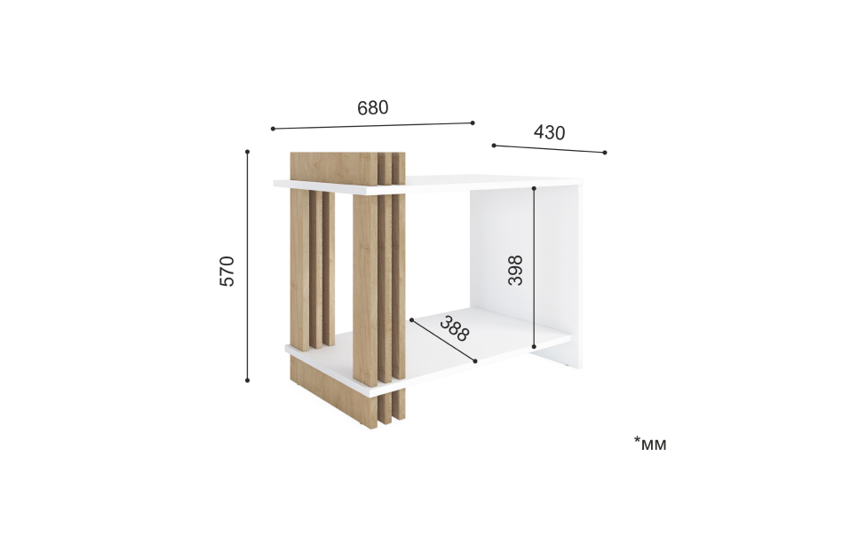 – описание: стиль минимализм, скандинавский, современный, размер 57x68x43 см, цвет белый, дуб кендал, назначение для дома.
