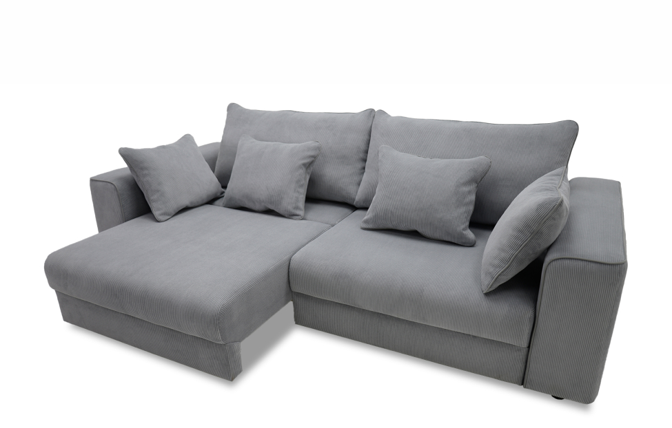 Диван выполнен в современном стиле, который будет гармонично смотреться в любом интерьере. Обивка из велюра c вертикальной текстурой актуального серого оттенка приятна на ощупь и легко чистится.