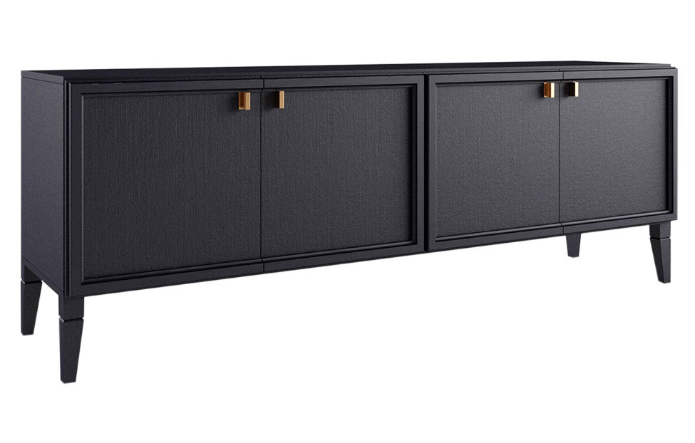 - Для ее изготовления использованы исключительно натуральные материалы — все поверхности облицованы натуральным дубовым шпоном, а резные ножки и бруски на фасадах выполнены из массива дуба;